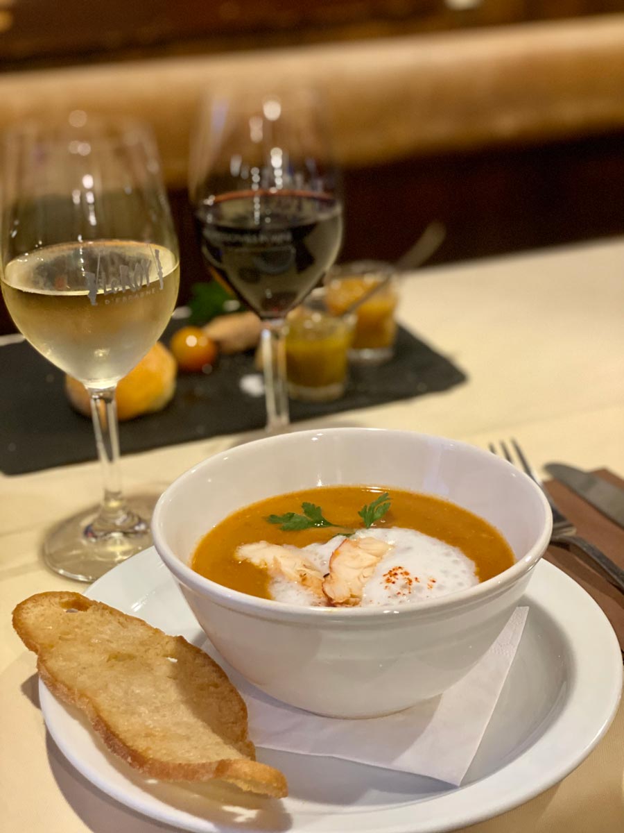 Bisque de homard à l’Armagnac et chantilly au piment d’Espelette